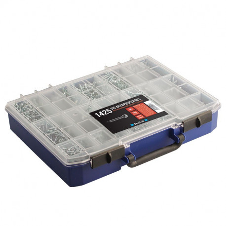 Coffret polypropylène contenant 1425 vis autoperceuses assorties.